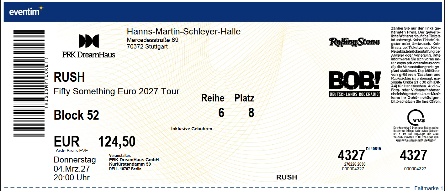 Rush (2027) Rush No Responses » Mar 032026 *** coming soon *** 04.03.2027 Stuttgart (DE), Hanns-Martin-Schleyer-Halle